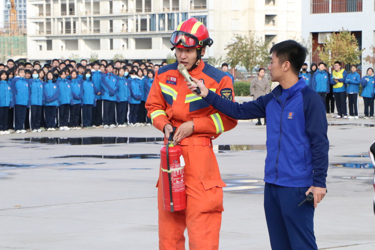 新城消防大队消防班班长张泽同志为同学们讲解消防知识及灭火器使用方法,帮助师生们在短时间内掌握了正确使用灭火器的方法。学生们通过亲身体验灭火器的使用,对火灾的扑救有了更加直观的体验和认识。随后,消防大队还向同学们展示了如何连接使用消防水带。