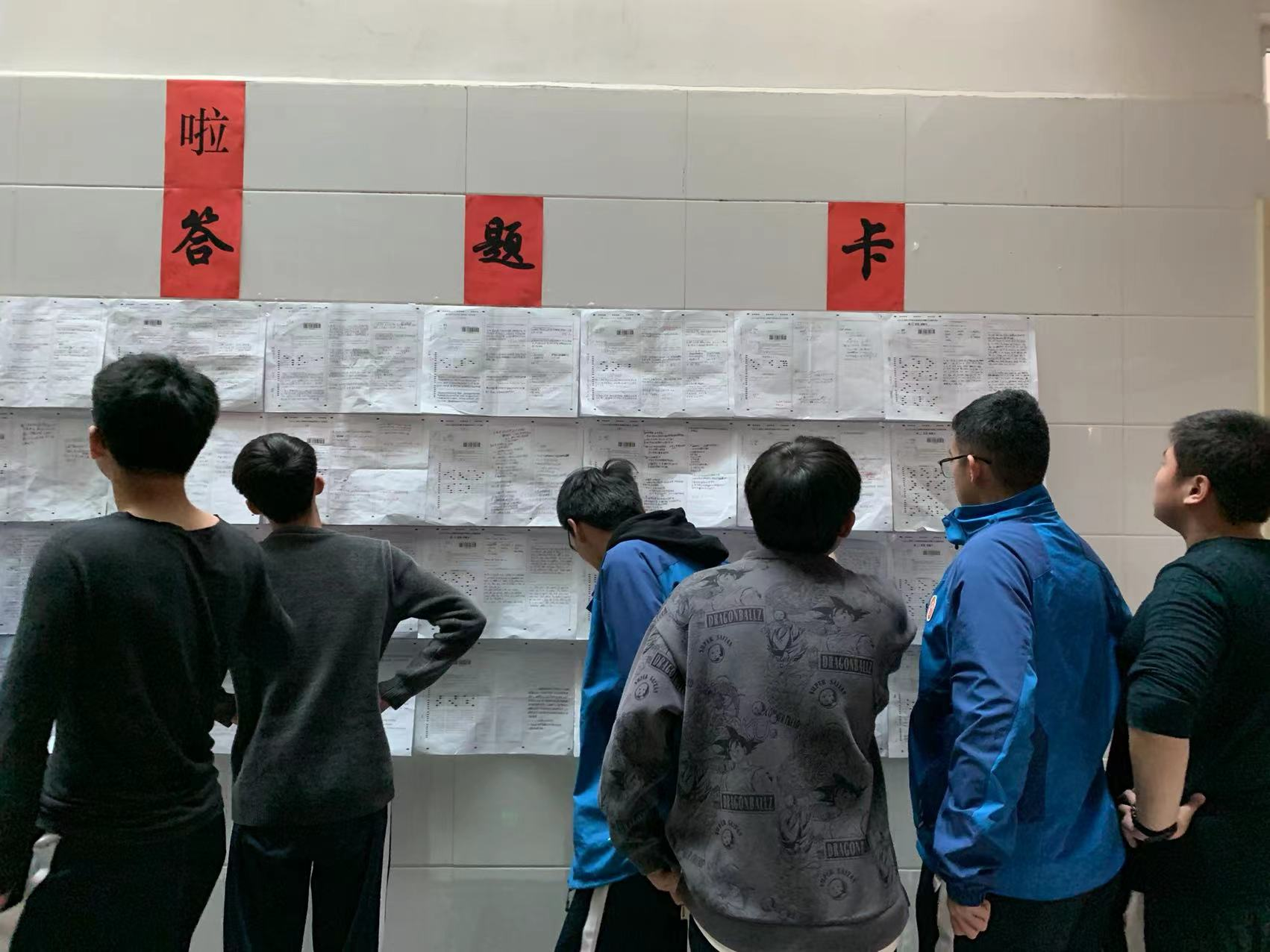 答题卡被老师们精心分成四类,有助于学生取长补短,相互学习。