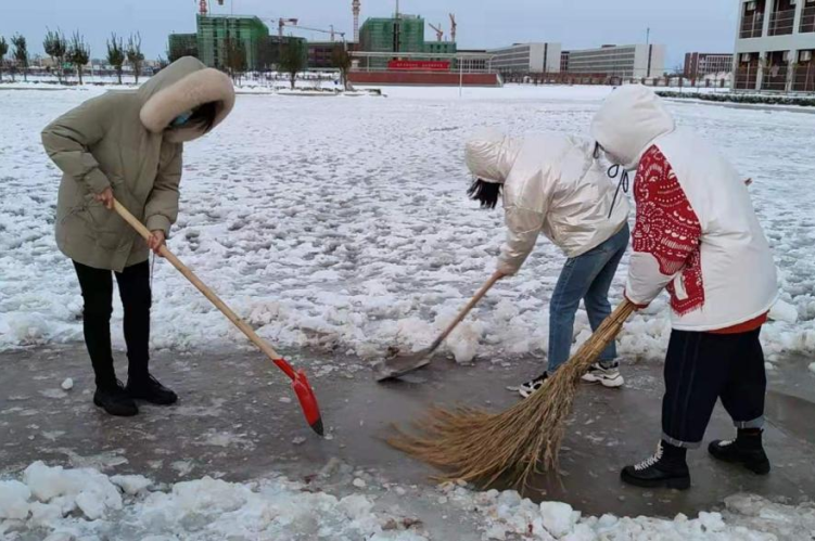 早上六点教师们起来为学生扫雪班主任们带领学生激情早读