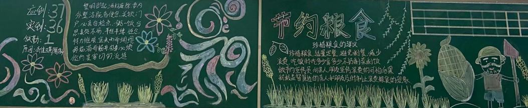 这一张张精美绝伦的黑板报凝聚了孩子们的辛勤与汗水,表达了他们“厉行节俭 节约粮食”的决心。