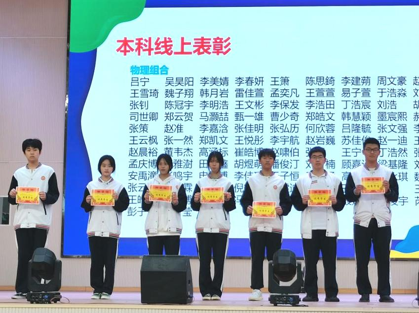 对成绩在强基线上、在本科线上、成绩进步的同学及获得组合状元的同学进行表彰。