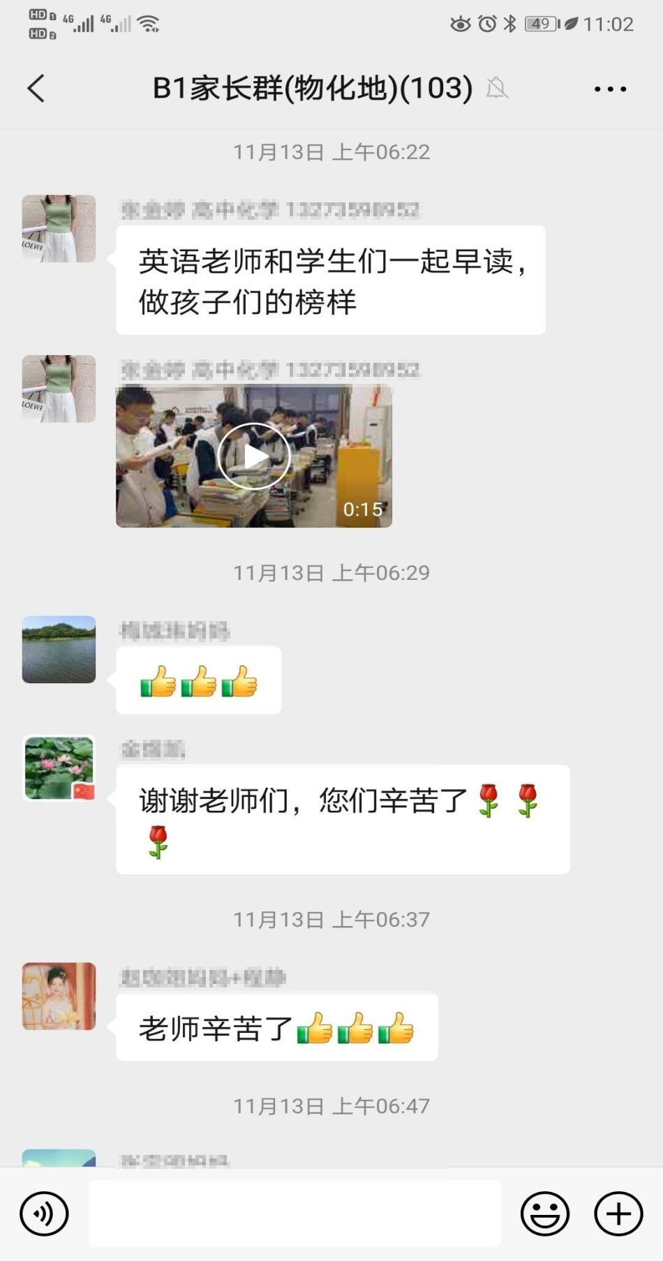 每天6点15开始早读。为鼓励学生并帮助学生明确目标,每次英语早读老师们都会提供“每日一句”和目标大学。